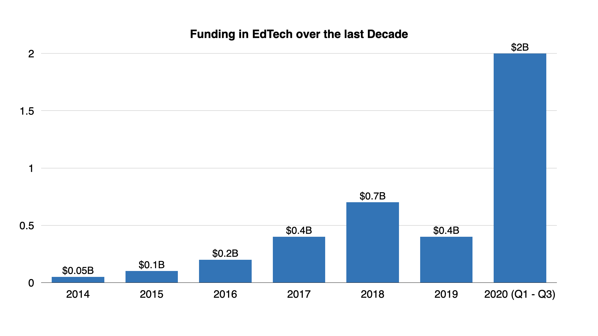 Indian EdTech players have raised over $2 Billion this year alone in venture capital funding compared to $1.85 billion in venture funding over the last 9 years combined.